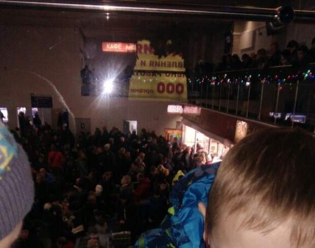 В здании аэровокзала и снаружи до сих пор находятся люди из-за того, что после суточного простоя больше рейсов было принято, чем отправлено.