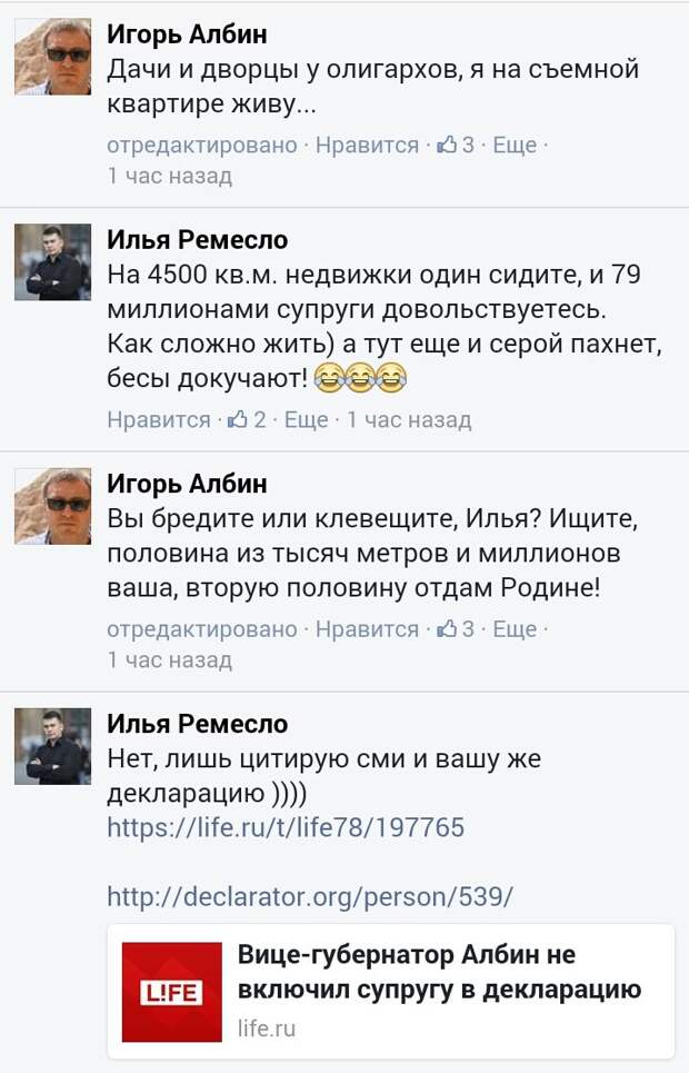 Дошло до того, что Албин, забыв посмотреть в свою же декларацию, называет "клеветой" утверждения о том, что ему принадлежат тысячи метров недвижимости и предлагает отдать половину "тому, кто найдет, а вторую половину – Родине".