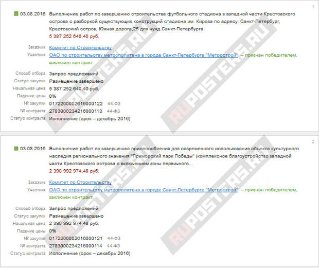 Новой компанией, которой с подачи вице-губернатора Санкт-Петербурга Игоря Албина поручили строительство стадиона, стало ОАО "Метрострой", получившее госзаказ на строительство стадиона в размере 7,8 миллиардов рублей. Учитывая, что на достройку стадиона оставалось 4 месяца, новый подрядчик должен был получать рекордную выручку – почти 2 миллиарда рублей ежемесячно, при готовности стадиона на 85%.