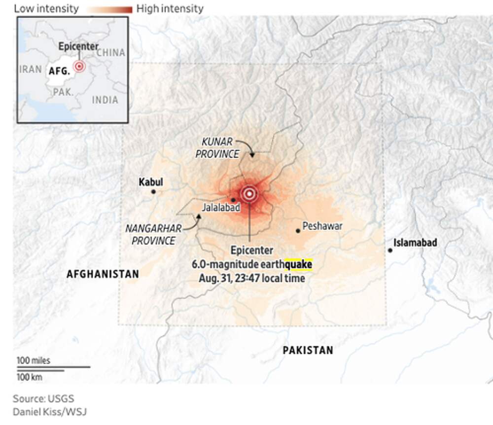 A powerful 6.0-magnitude earthquake struck near the mountainous areas of the Afghan-Pakistan border overnight, resulting in the death of at least 800 people and 2,500 injuries. The death toll is expected to rise, The